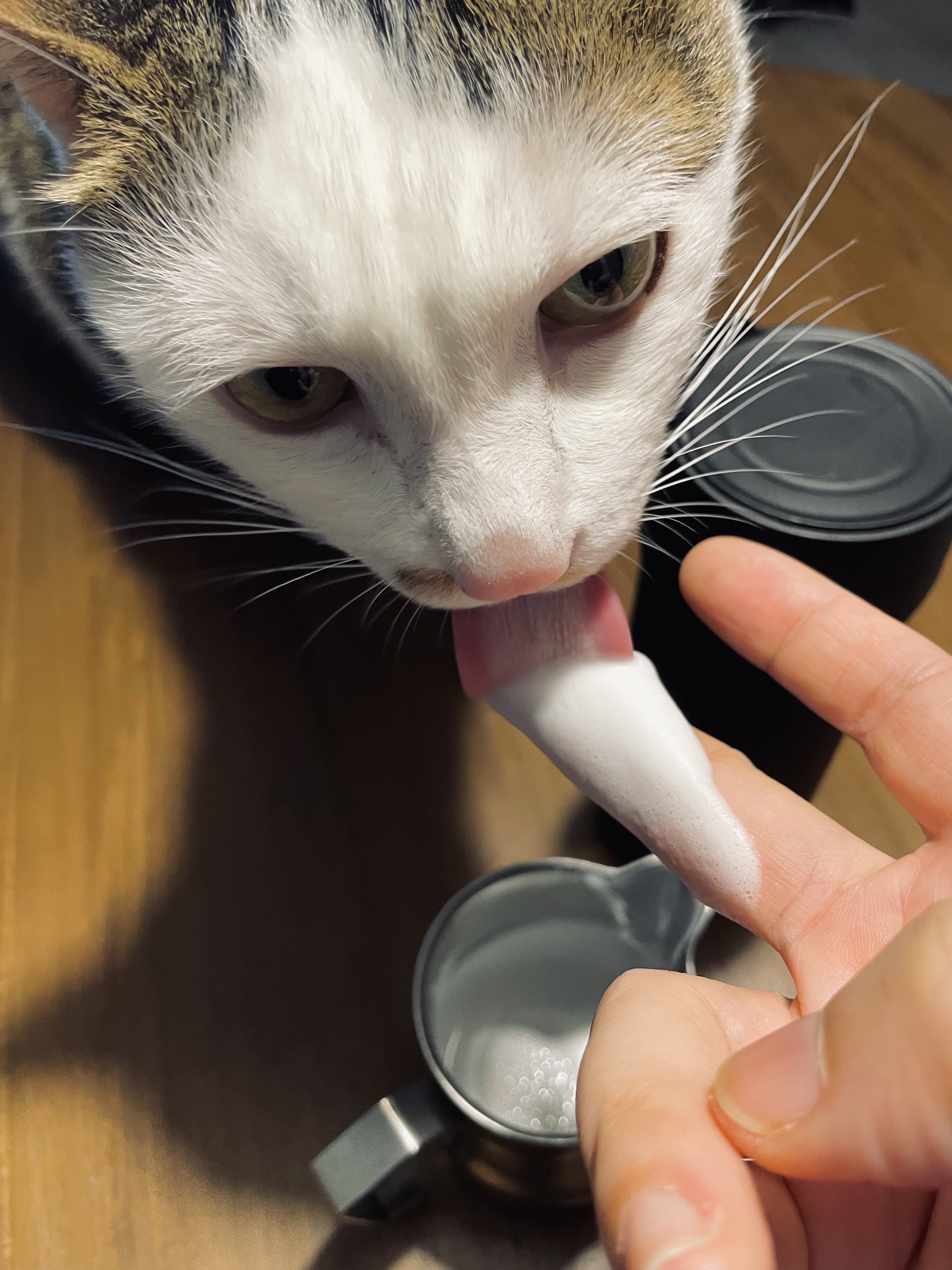 快速的把四個貓砂盆清乾淨,匆匆打個綠拿鐵,一邊喝一邊開罐頭準備給他們第二餐,準確得依據四隻貓不同的極限添加水分進去,水多了,要不就拒吃,要不,等等就準備清理噴發的嘔吐。一切順利完成後,飛快的煮杯咖啡,還要分一點奶泡給餐桌上等著的饞貓舔幾口。