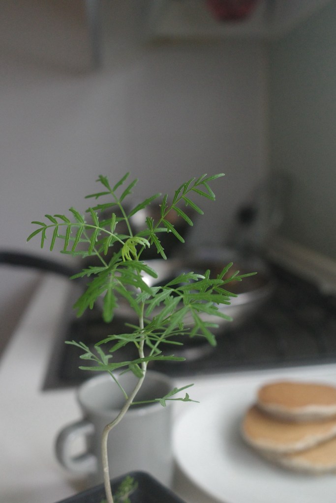 我喜歡早晨獨處的時光,有時候會端著一杯咖啡,走到陽台或是頂樓摸摸植物、看看他們,如果時間夠的話,就會拿起相機幫他們拍寫真,記錄一下,順便也腦補一下科普知識;晨光灑落,像睡了美容覺一般,那些只開幾個小時的花,剛伸展開來的葉子(豆科尤其是),看著看著都會讓人覺得這一天的開始,突然變得清新且值得期待。